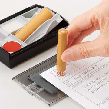 印鑑に2本、印紙・切手などビジネスのなつ印シーンに必要な一式をひとまとめに収納。<br>