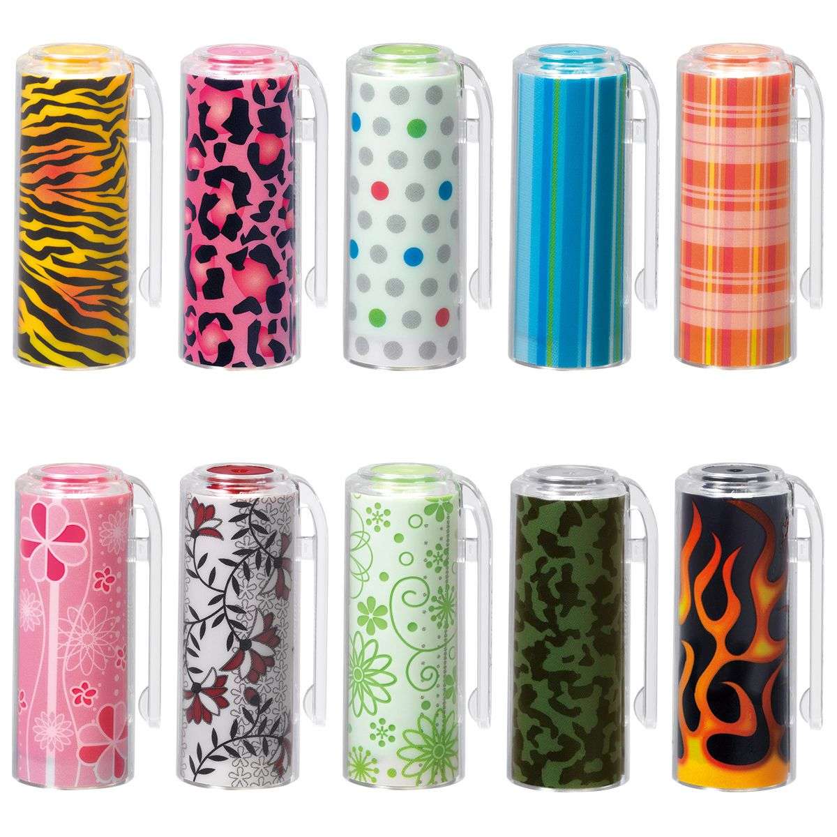 お手持ちのネーム9を自分好みに変身させてみませんか。種類豊富に揃えたホルダーとキャップの中から、好きな色や絵柄を選んで組み合わせればオリジナルのネーム印がつくれます。