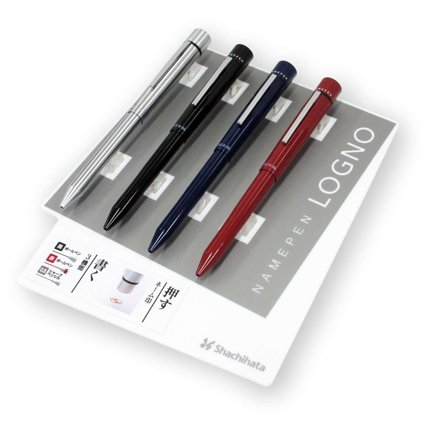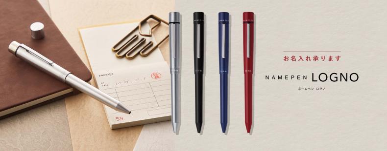 「ネームペン ログノ」は、ネーム印と2色(黒・赤)の油性ボールペン、シャープペンシルが1本にまとまった実用性の高いネームペンです。<br>