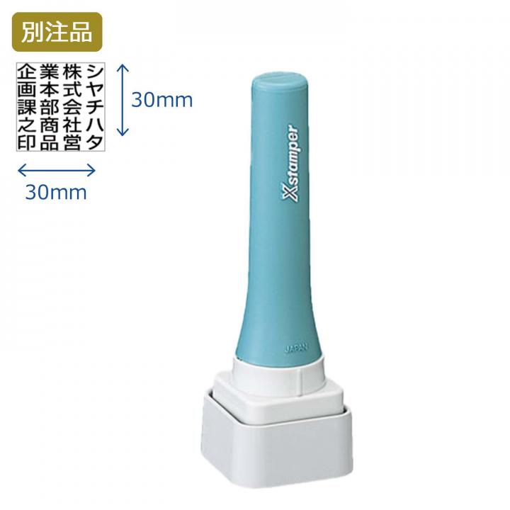 30×30mm角のスタンパー。書類や封筒などへのコメント表示に最適です。<br> そのほか、記念スタンプや様々なPRにも幅広く対応します。<br> <br> [印面サイズ]30×30mm [書体]9書体 [インキ色]6色<br> <br> シヤチハタXスタンパーだから、スタンプ台要らずでぽんぽん押せます。<br> <a href="http://www.shachihata.co.jp/support/ink/index.php" target="_blank">→インキの補充方法はこちら</a><br><br> ※「シャチハタ」ではなく「シヤチハタ」です。