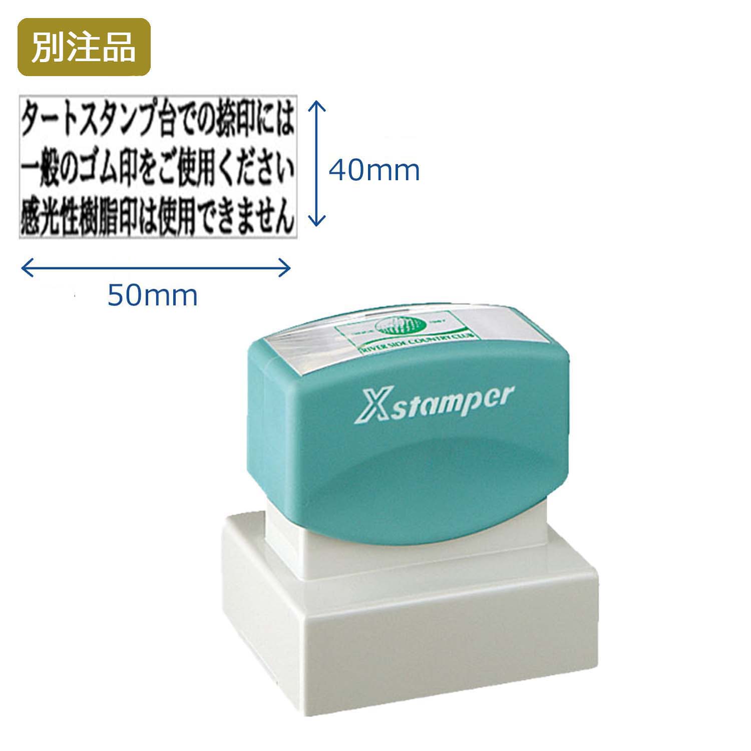 角型印4050号の別注品をオーダーメイドでお作りします。<br> 40×50mm角のスタンパーは、店舗印や書類・封筒へのコメント表示、オリジナル枠や回覧枠に最適です。<br> 記念スタンプや様々なPRにも幅広く対応します。<br> <br> [印面サイズ]40×50mm [書体]9書体 [インキ色]6色<br><br> シヤチハタXスタンパーだから、スタンプ台要らずでぽんぽん押せます。<br> <a href="http://www.shachihata.co.jp/support/ink/index.php" target="_blank">→インキの補充方法はこちら</a><br> <br>※「シャチハタ」ではなく「シヤチハタ」です。