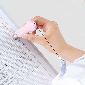 看護師や販売員など、立ち仕事をされる方におすすめの、リール式タイプ。衣服に取り付けたまま片手で簡単に捺印できます。