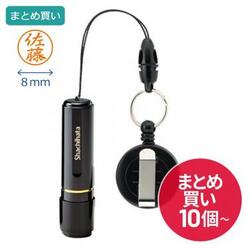 ネーム印を身に付けて携帯することができ、約60cm伸縮するので取り付けたままなつ印することができます。ネーム印をなくす心配がなく、使用頻度の高い方や、普段持ち歩いて使用される方には大変便利です。<br>帯用コードの種類は、カールコードとリールコードの2種類。
