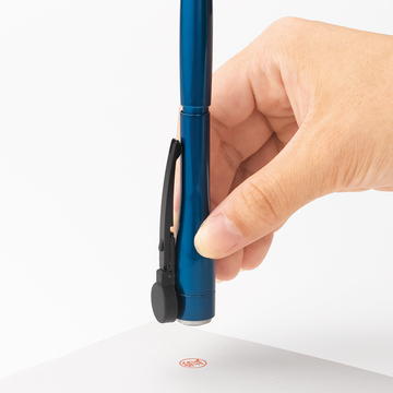 POINT① 1本で筆記となつ印!<br>シャープペンシル、油性ボールペン、直径9㎜のネーム印を1本に内臓しています。<br>オフィスで外出先で、大活躍のスグレモノです。<br>※ボールペン・シャープペンシルの切替えは回転式、シャープペンの芯を出す時はノック式になります。<br>