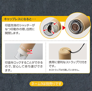 既に持っている「ネーム9」を「キャップレス9」にできるキットなのだと思い込んでいましたが,「キャップレス9」より一回り大きくてショックでした。まあ,使用する分には支障ないのですが……「でかいなあ」って,毎回感じてしまいます。感じ方は人それぞれだとは思いますが,個人的には「キャップレス9を追加購入した方が良かった」と思ってしまいました。