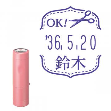 日付印 イラストデーターネームEX15号 スタンド式  コーラルピンク【別注品】