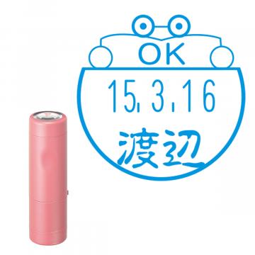 日付印 イラストデーターネームEX15号 キャップレス式 コーラルピンク【別注品】