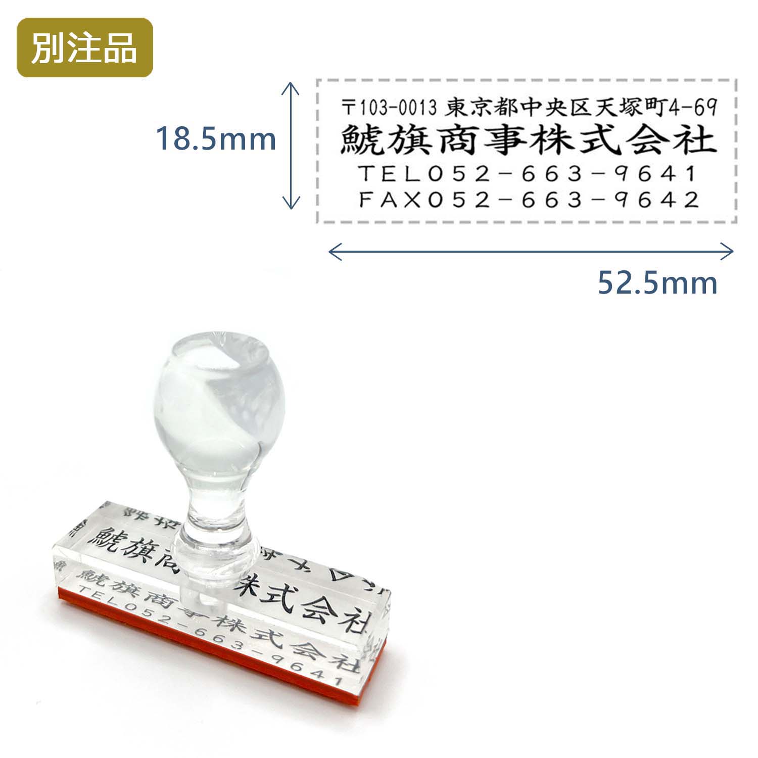 住所印(18.5×52.5mm) アクリル【別注ゴム印】4行タイプ ヨコ