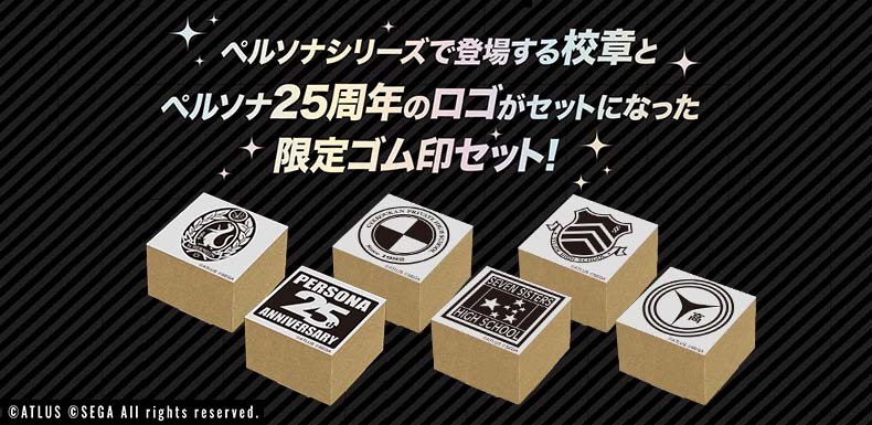 ペルソナシリーズで登場する校章とペルソナ25周年のロゴがセットになった限定ゴム印セットになります。