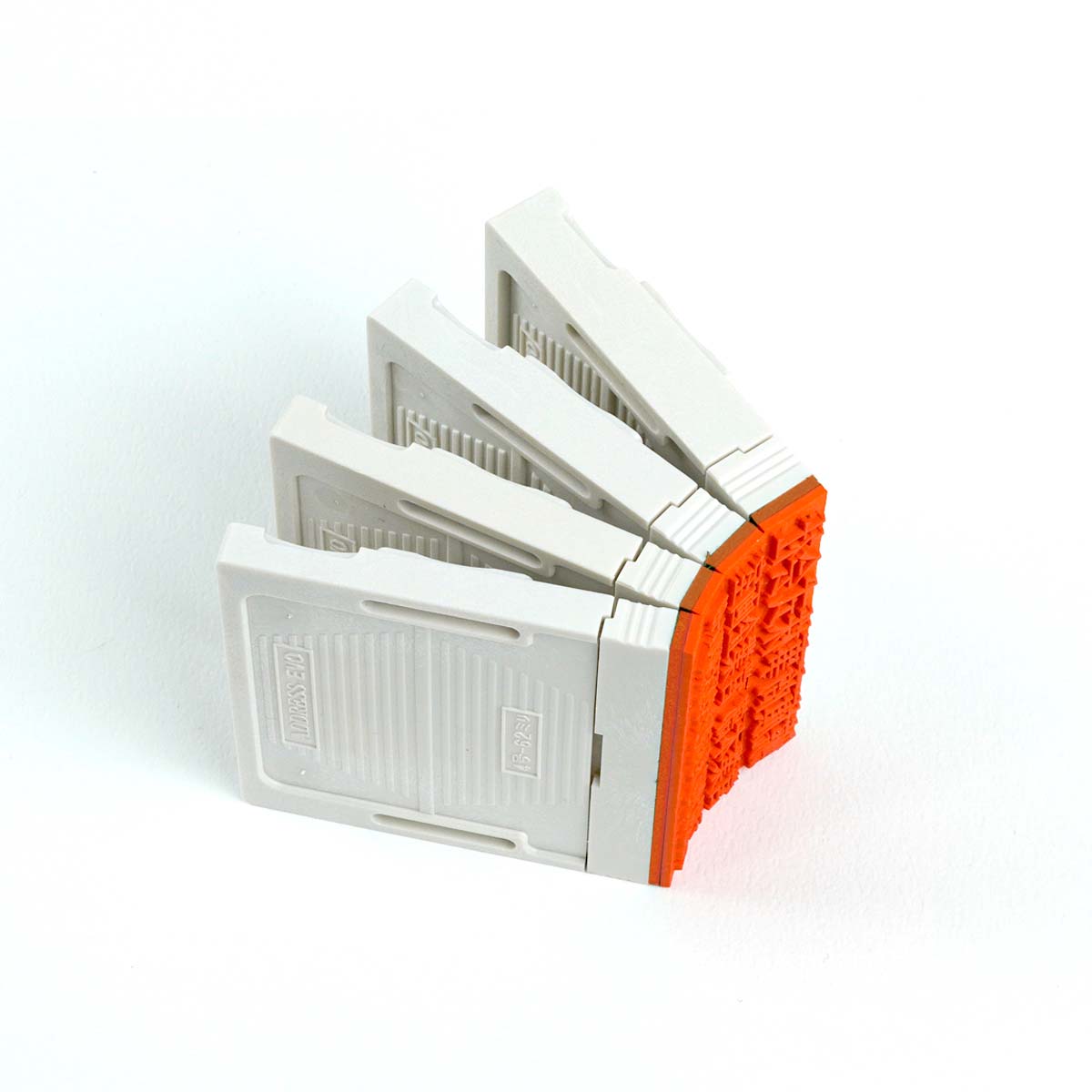 用途に合わせて本体を自由に組み合わせることができる連結式タイプのゴム印。