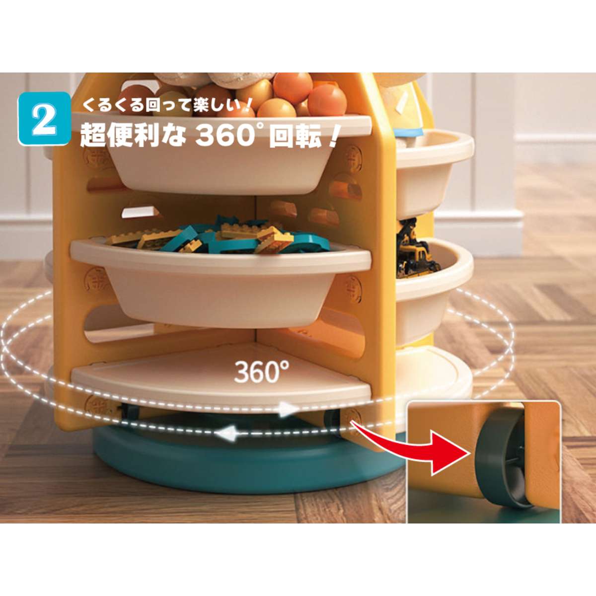 おもちゃがたくさん詰まったラックを回して楽しくお片付け♪<br><br>