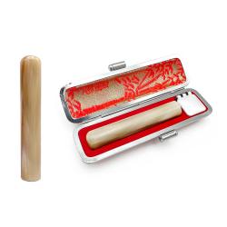 ▼牛角(色)上【うしのつの】<br> 陸牛の角の印材で淡いクリーム色と茶色の班が混ざり合うマーブル模様をしています。天然素材のため1本1本が異なる模様をしているのが特徴です。<br><br> ▼お好きな書体をお選びください<br> 選べる書体は篆書・古印・隷書・行書・印相体の5種類。<br> 美しく風格のあるシヤチハタオリジナルフォント(印相体を除く)となっております。<br><br> ▼選べる2種類のケース付<br> 赤、黒、どちらかお好きなケースをつけてお届け致します。<br> ギフトとしてもご利用ください。