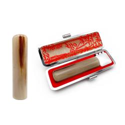 ▼牛角(色)上【うしのつの】<br> 陸牛の角の印材で淡いクリーム色と茶色の班が混ざり合うマーブル模様をしています。天然素材のため1本1本が異なる模様をしているのが特徴です。<br><br> ▼お好きな書体をお選びください<br> 選べる書体は篆書・古印・隷書・行書・印相体の5種類。<br> 美しく風格のあるシヤチハタオリジナルフォント(印相体を除く)となっております。<br><br> ▼選べる2種類のケース付<br> 赤、黒、どちらかお好きなケースをつけてお届け致します。<br> ギフトとしてもご利用ください。