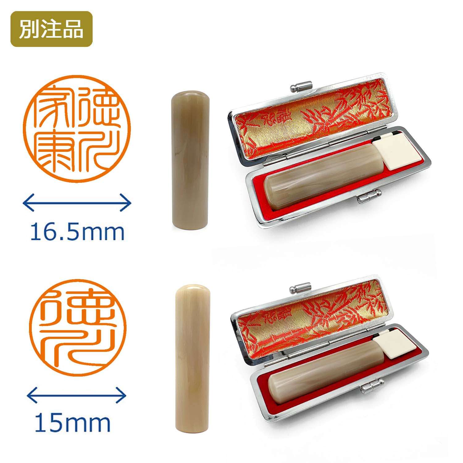 直径16.5mmの実印と直径15mmの銀行印 牛角白セット印鑑 ケース付