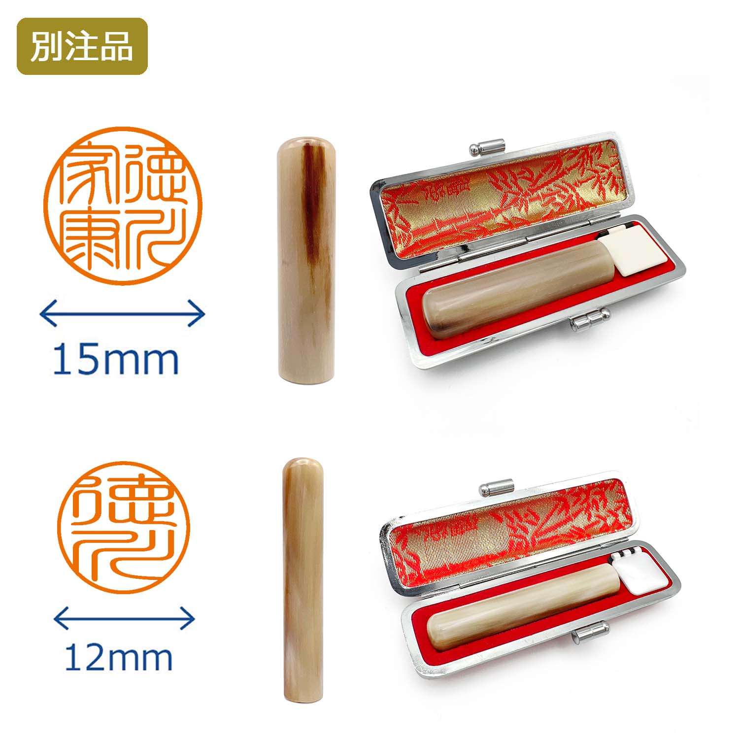 直径15mmの実印と直径12mmの銀行印 牛角色上セット印鑑 ケース付