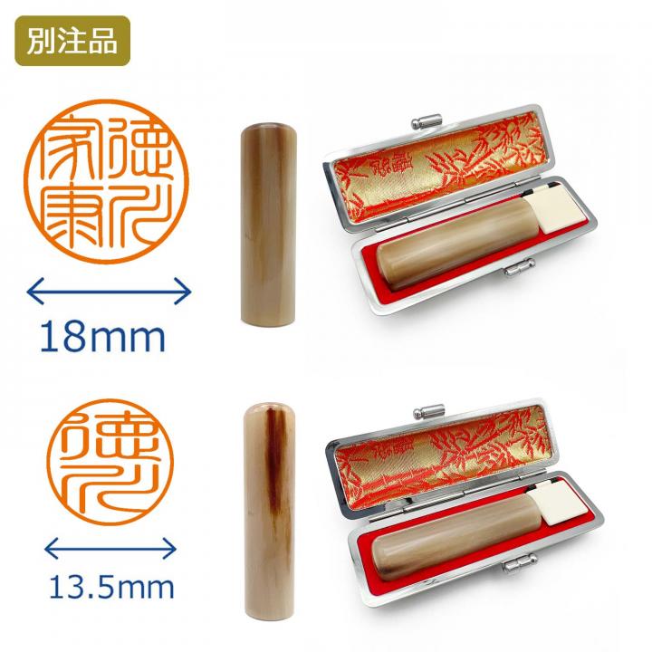 直径18mmの実印と直径13.5mmの銀行印 牛角色上セット印鑑 ケース付