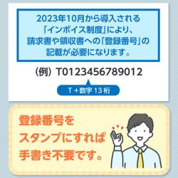 登録番号、会社名、住所、電話番号からよく使う一言メッセージまで。それぞれを1行で表示できるシンプルで用途の広いゴム印