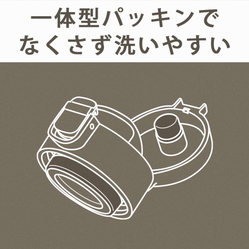 カバーや飲み口本体とパッキンが一体型なのでパッキンの紛失や外して洗う手間が省けます<br/>