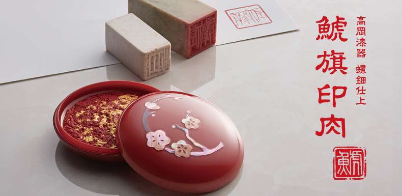 現在普及している朱肉は多くがスポンジタイプのものですが、こちらは朱肉本来の形である“練り朱肉”の「鯱旗印肉」です。