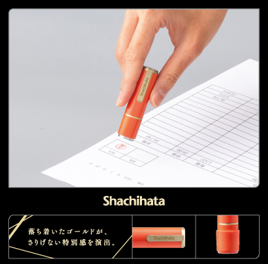 100周年の限定色。shachihataの文字が金色でとてもお洒落です。職場での押印に…皆んなの注目の的です。
